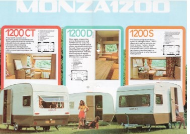Monza, standart olarak bir gaz lambası, ayaklı su pompası ve iki gözlü ocakla geldi. Aynı gövde uzunluğuna ancak farklı düzenlere sahip birden fazla modele sahip olmak yaygındı. Sonuç olarak, Monza 1200S, 1200D veya 1200CT olarak piyasaya sunuldu.